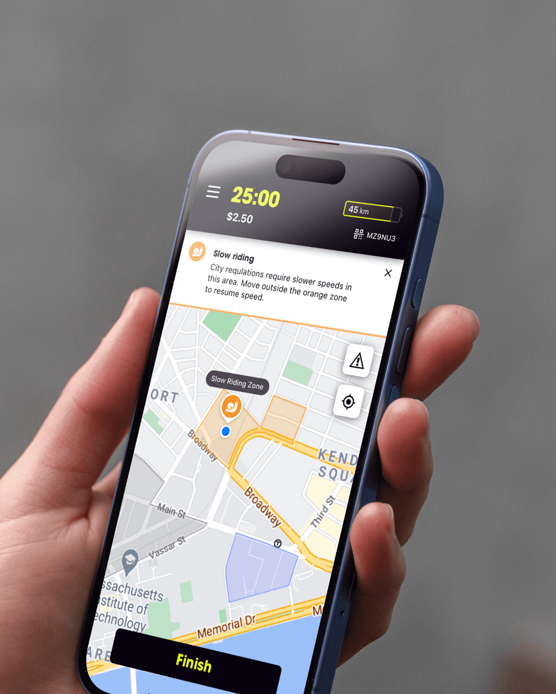 Cities regulate scooters through invisible digital boundaries: no-ride zones where the scooter stops, no-parking zones where a trip can't end, and slow zones where speed is automatically reduced.